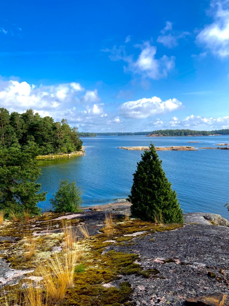 På Stora Halsö har bryggparlamentet sammankomst. Själv känner han sig inte social utan tar ett dopp och går sedan en runda på ön.