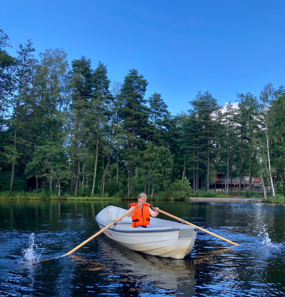 Skolorna börjar. Rodd har länge varit på agendan och då han får tillfälle att vistas med Alva efter skolan bär det av till roddbåtarna på Gallträsk. Flickan säger att hon inte kan ro men hopar. Efter en stund ror hon hur bra som helst. Men handflatorna ansträngs och riskerar blåsor, tröttheten och hungern tar överhand och plötsligt kan hon inte ro alls. Farfar får släpa henne iland. De åker hem för att äta och se på superhjälteskolan. Den har sina poänger.