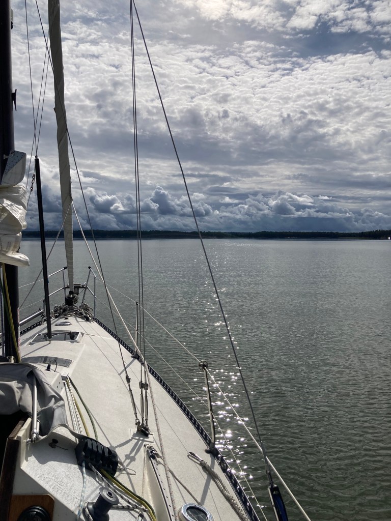 Han stiger tidigt upp och kör för motor till Hemvikshamnen. Uppgifter väntar hemmavid. Han hoppas kunna fortsätta segla nästa vecka.