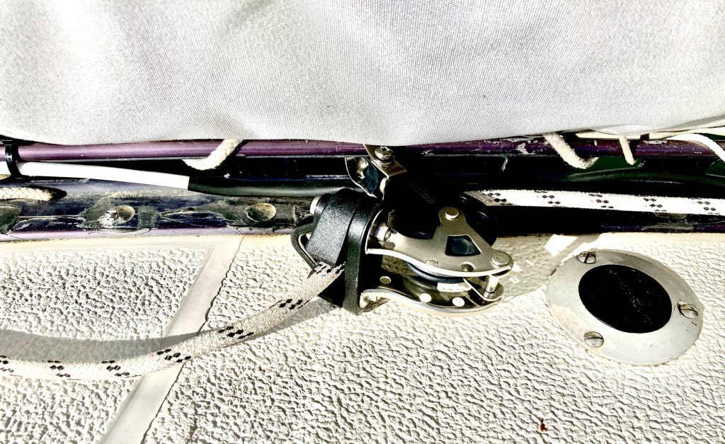 Inte i mantåget utan i relingslisten. Få se om linan löper ut smärtfritt. Nu är grejen äntligen på plats!
