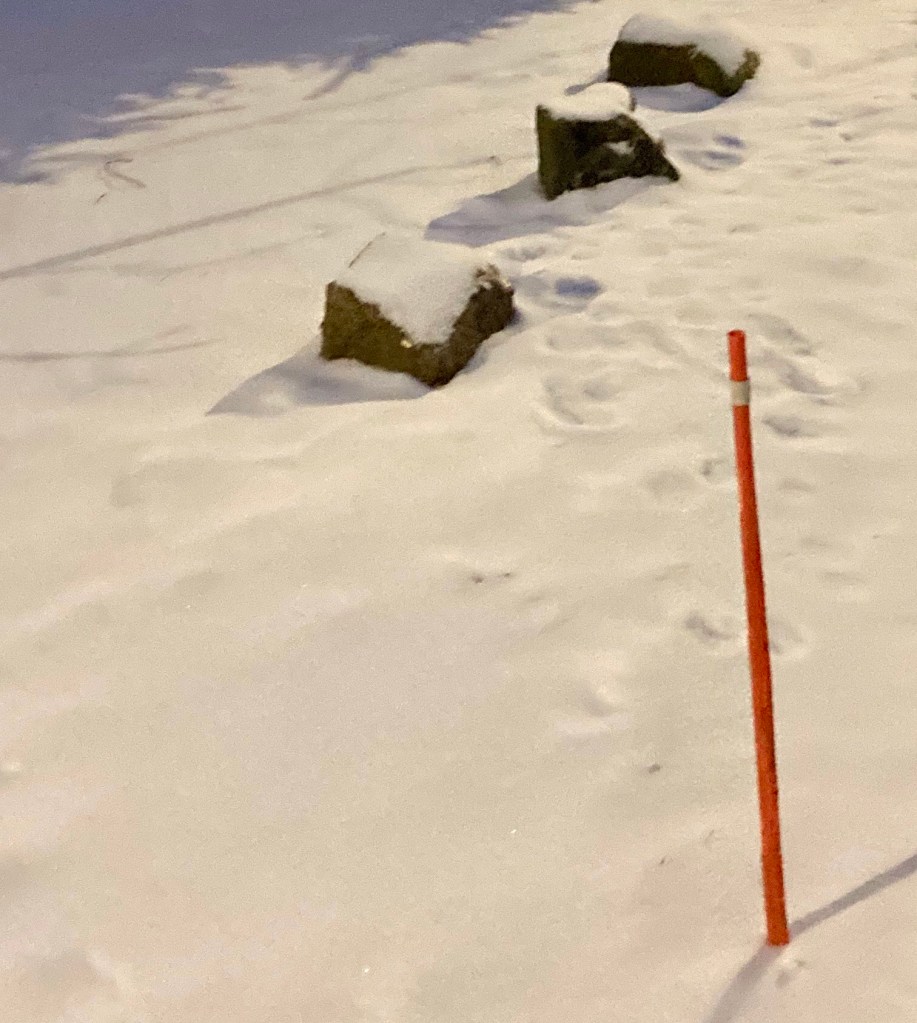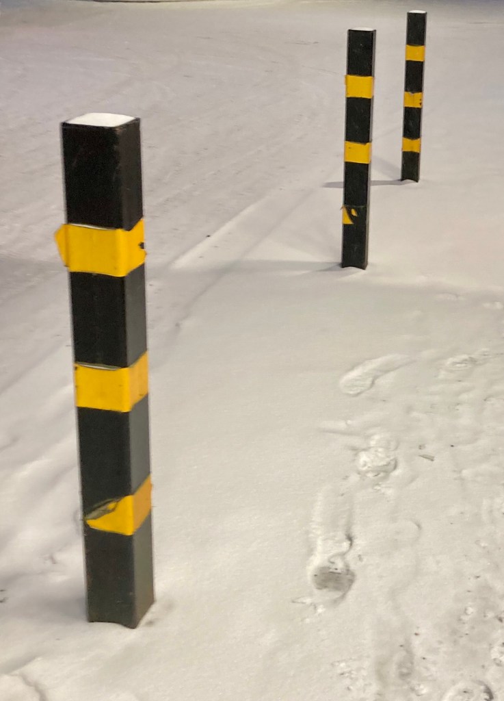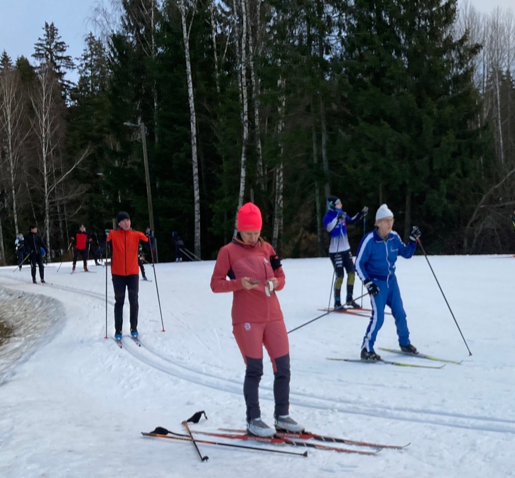 Då han tar en titt i skidspåret verkar de ha det mycket jäktigare. Han har gjort rätt val. De följande dagarna fortsätter han att stavgå i hemknutarna bl.a. för att passa upp morsan.