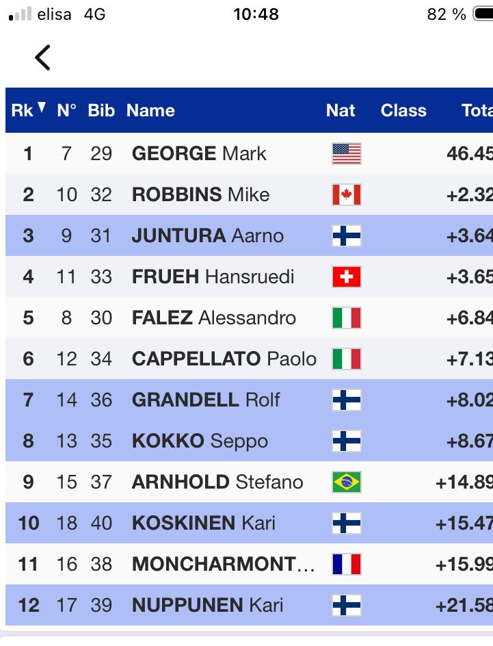Det andra åket åks följande dag och resultatet är ganska lika förutom att Aarno vinner och differensen till de andra inte blir lika stor för själv.
