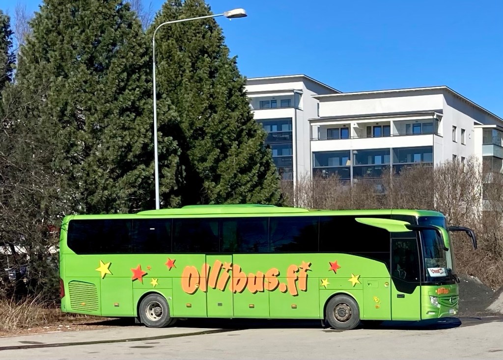 Eftersom han inte deltar i super g tar han bussen till Rovaniemi för att därifrån ta dagståget till Helsingfors.